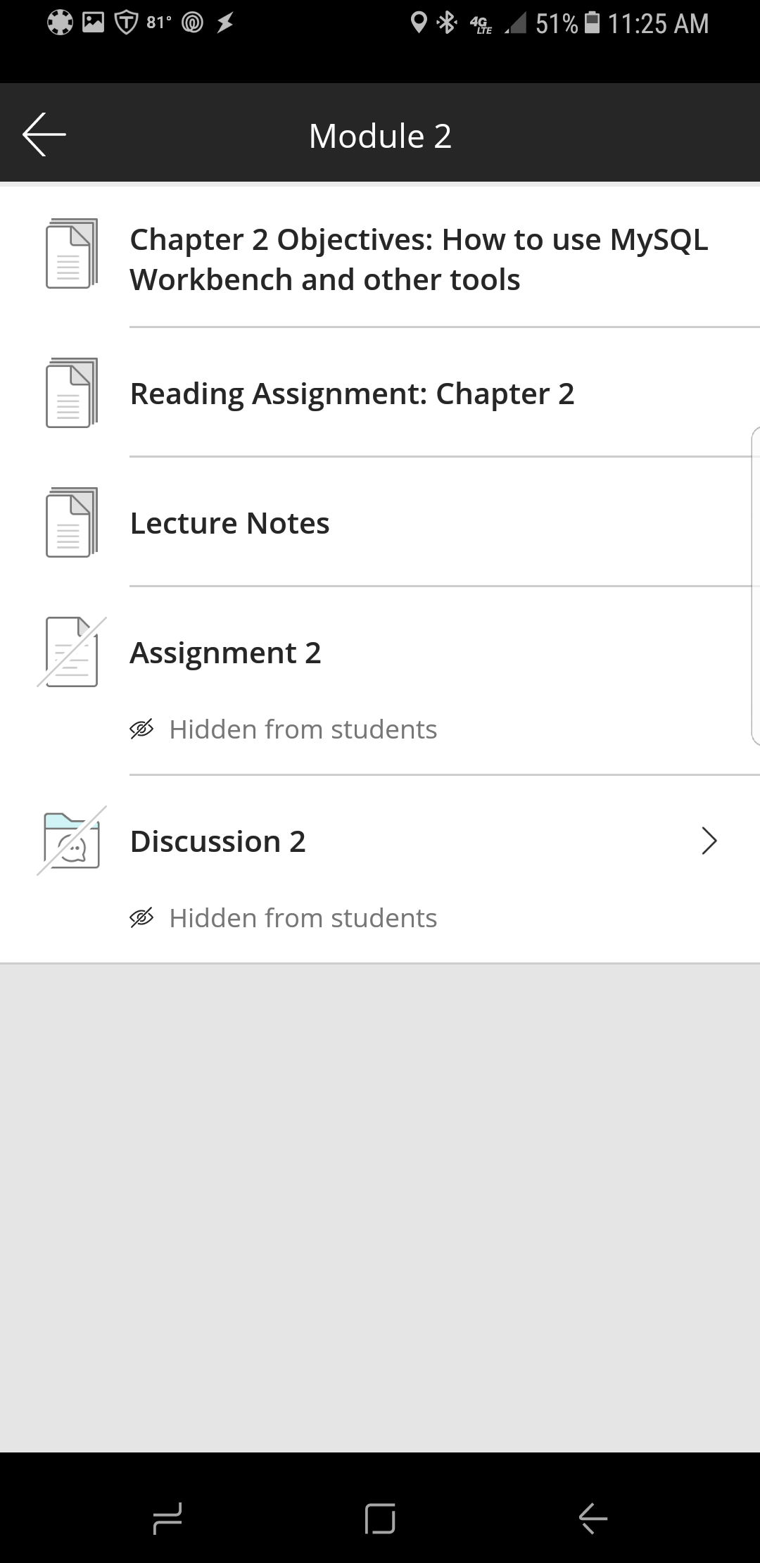 I see you are a fellow Android user. We have found the Android app is not loading content reliably. About 99% of the time when opening content the circle keeps spinning and doesn’t load anything. The same course in the Student app on the same device does not exhibit this problem.